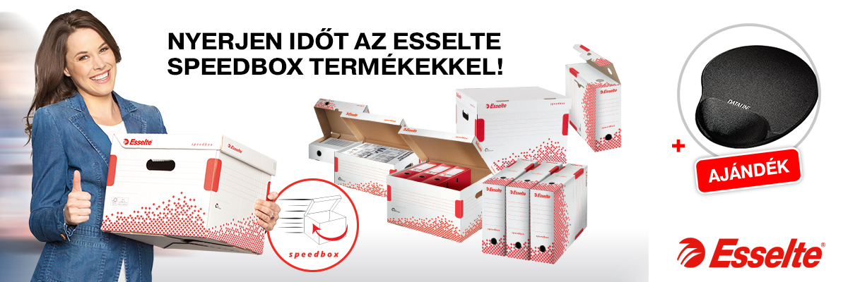 VÁSÁROLJON Speedbox archiváló termékeket minimum nettó 15.000 Ft értékben. REGISZTRÁLJON és töltse fel a vásárlást igazoló bizonylatot! VEGYE át ajándékát: az Esselte zselés egéralátétet! Részletek: Esselte Speedbox promóció
